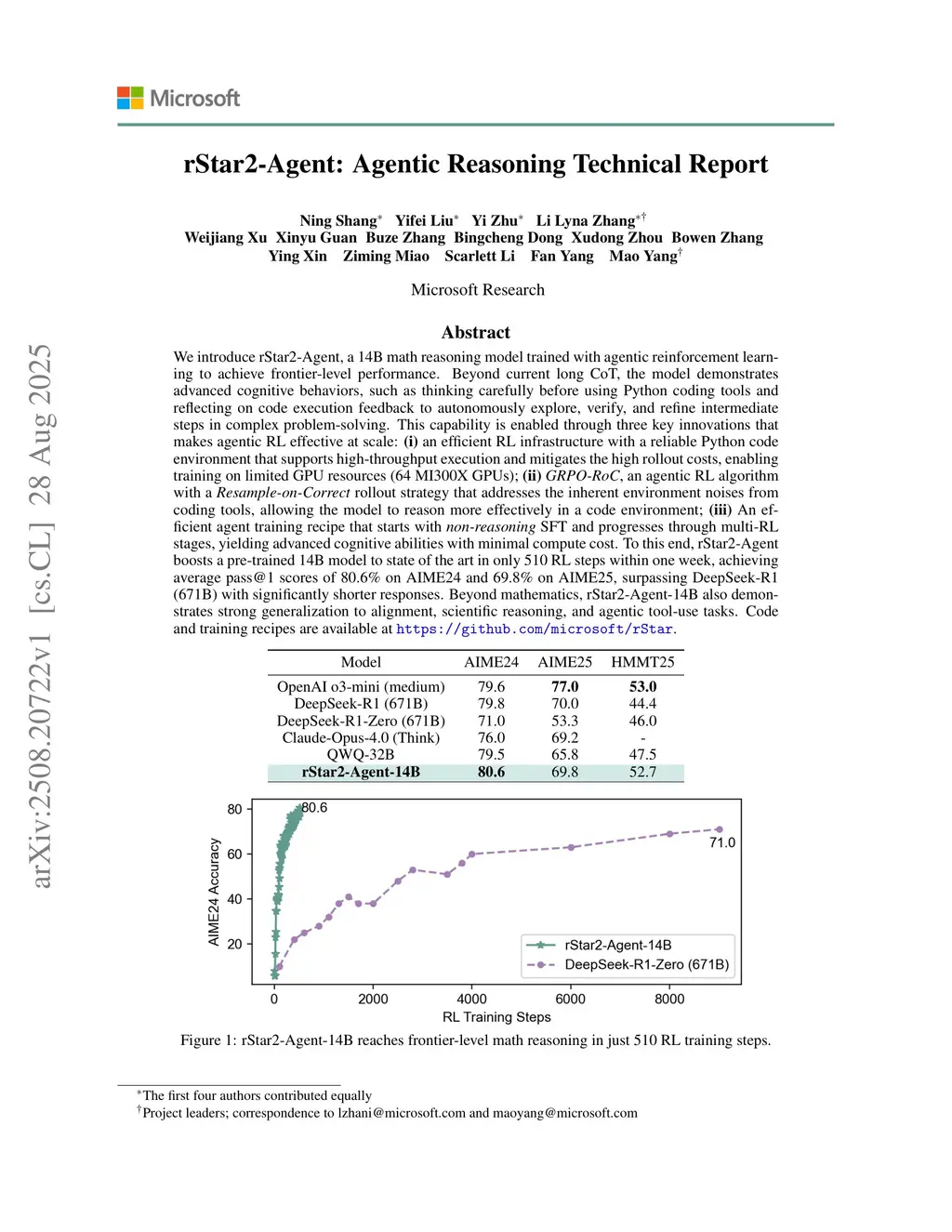 rStar2-Agent: Agentic Reasoning Technical Report