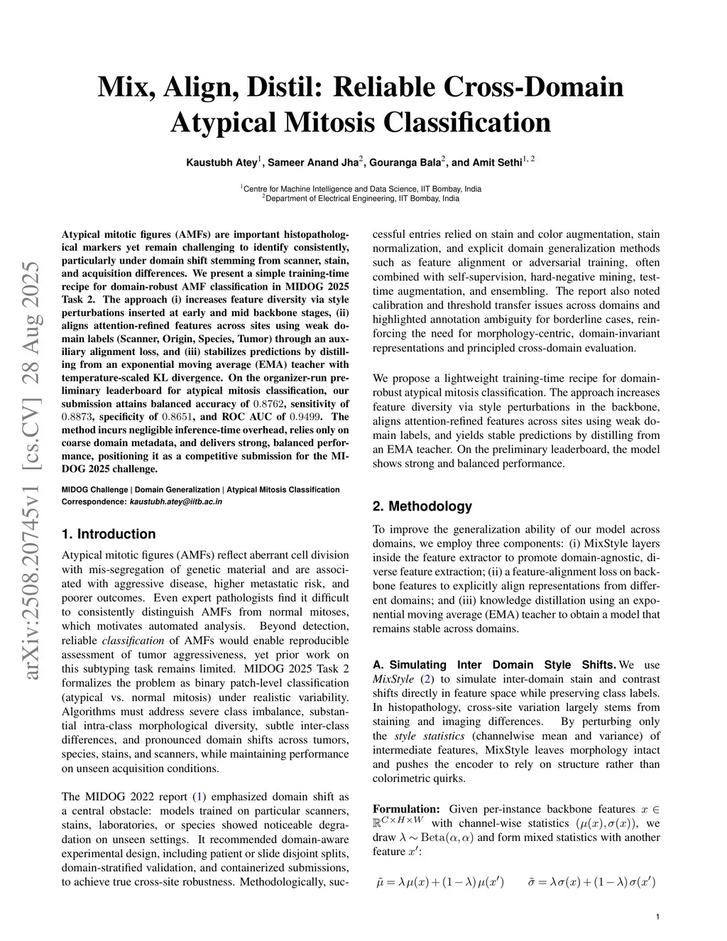 Mix, Align, Distil: Reliable Cross-Domain Atypical Mitosis Classification