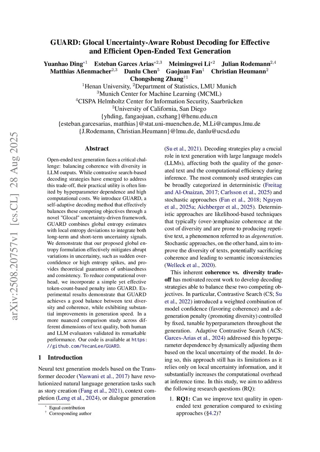 GUARD: Glocal Uncertainty-Aware Robust Decoding for Effective and Efficient Open-Ended Text Generation