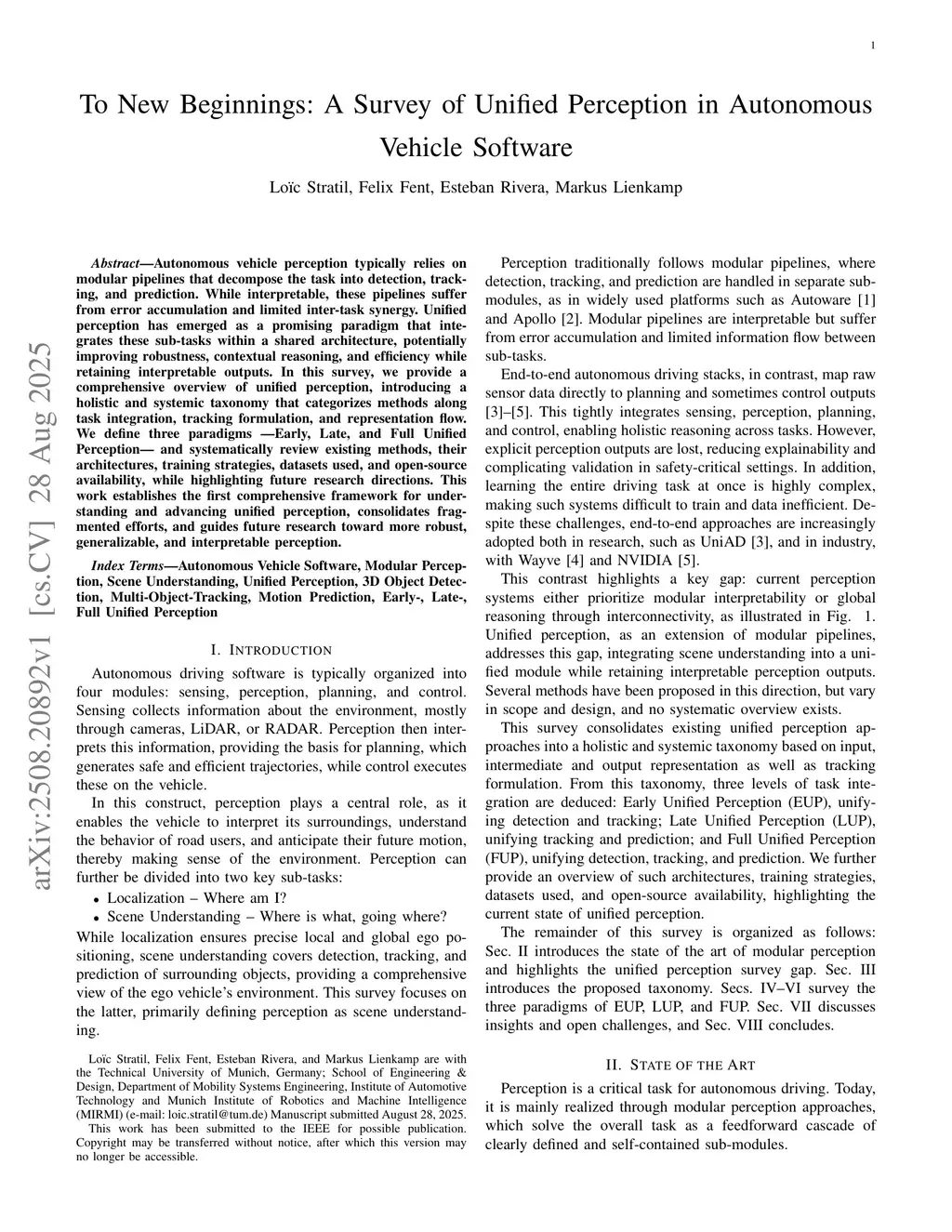 To New Beginnings: A Survey of Unified Perception in Autonomous Vehicle Software