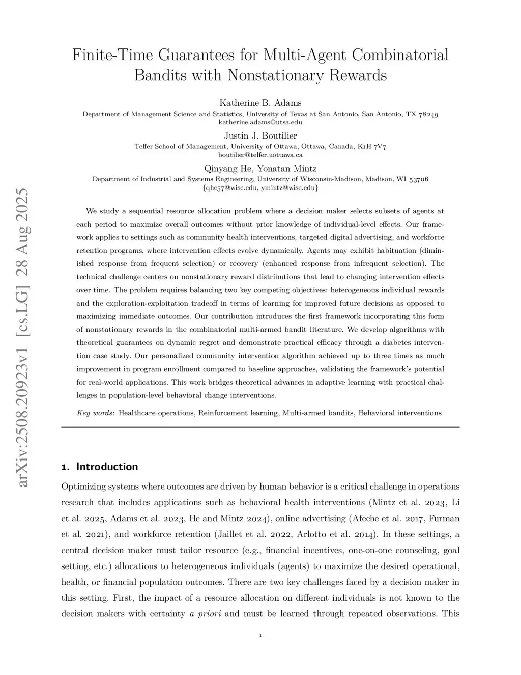 We study a sequential resource allocation problem where a decision maker selects subsets of agents at each period to maximize overall outcomes without prior knowledge of individual-level effects. Our framework applies to settings such as community health interventions, targeted digital advertising, and workforce retention programs, where intervention effects evolve dynamically. Agents may exhibit habituation (diminished response from frequent selection) or recovery (enhanced response from infrequent selection). The technical challenge centers on nonstationary reward distributions that lead to changing intervention effects over time. The problem requires balancing two key competing objectives: heterogeneous individual rewards and the exploration-exploitation tradeoff in terms of learning for improved future decisions as opposed to maximizing immediate outcomes. Our contribution introduces the first framework incorporating this form of nonstationary rewards in the combinatorial multi-armed bandit literature. We develop algorithms with theoretical guarantees on dynamic regret and demonstrate practical efficacy through a diabetes intervention case study. Our personalized community intervention algorithm achieved up to three times as much improvement in program enrollment compared to baseline approaches, validating the framework's potential for real-world applications. This work bridges theoretical advances in adaptive learning with practical challenges in population-level behavioral change interventions.