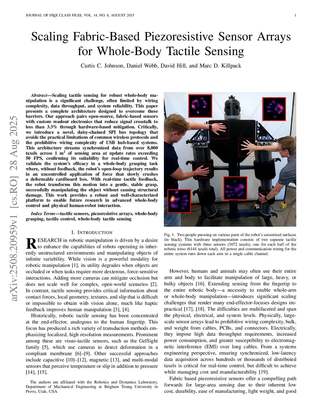 Scaling Fabric-Based Piezoresistive Sensor Arrays for Whole-Body Tactile Sensing