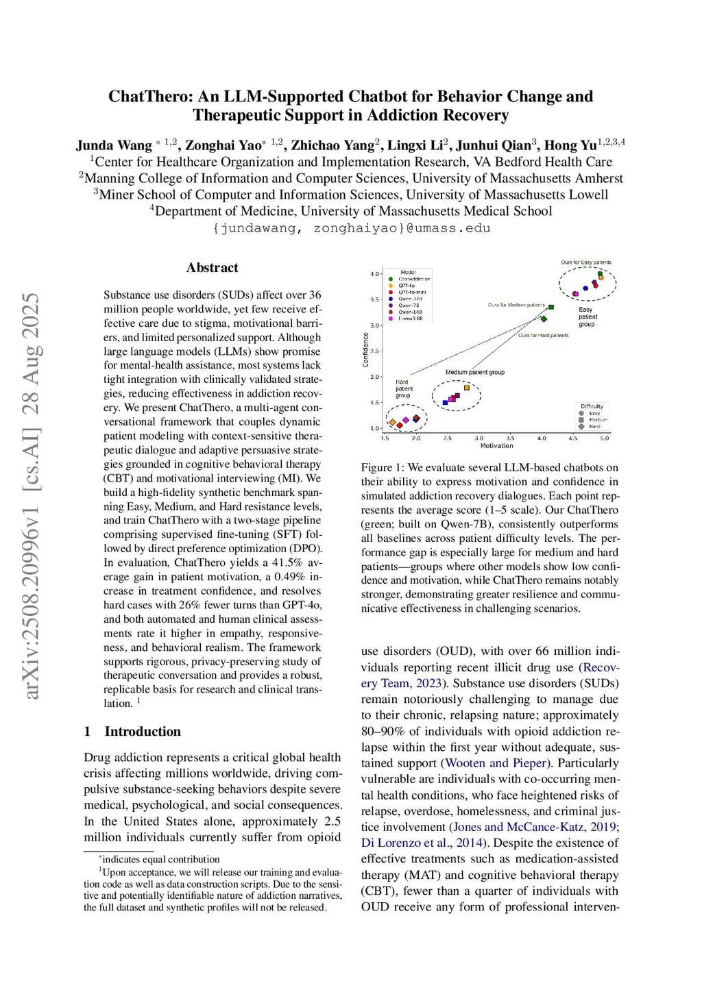 ChatThero: An LLM-Supported Chatbot for Behavior Change and Therapeutic Support in Addiction Recovery