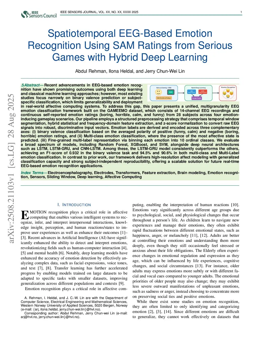 Spatiotemporal EEG-Based Emotion Recognition Using SAM Ratings from Serious Games with Hybrid Deep Learning