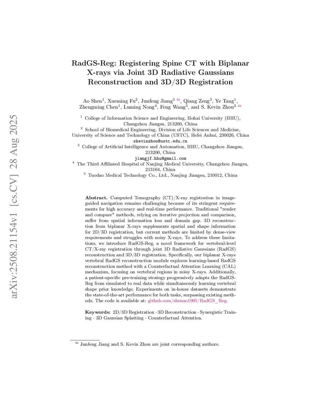 RadGS-Reg: Registering Spine CT with Biplanar X-rays via Joint 3D Radiative Gaussians Reconstruction and 3D/3D Registration