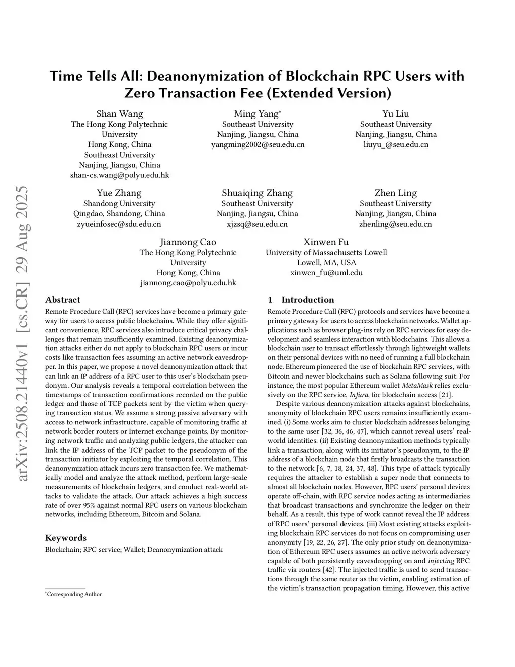 Time Tells All: Deanonymization of Blockchain RPC Users with Zero Transaction Fee (Extended Version)