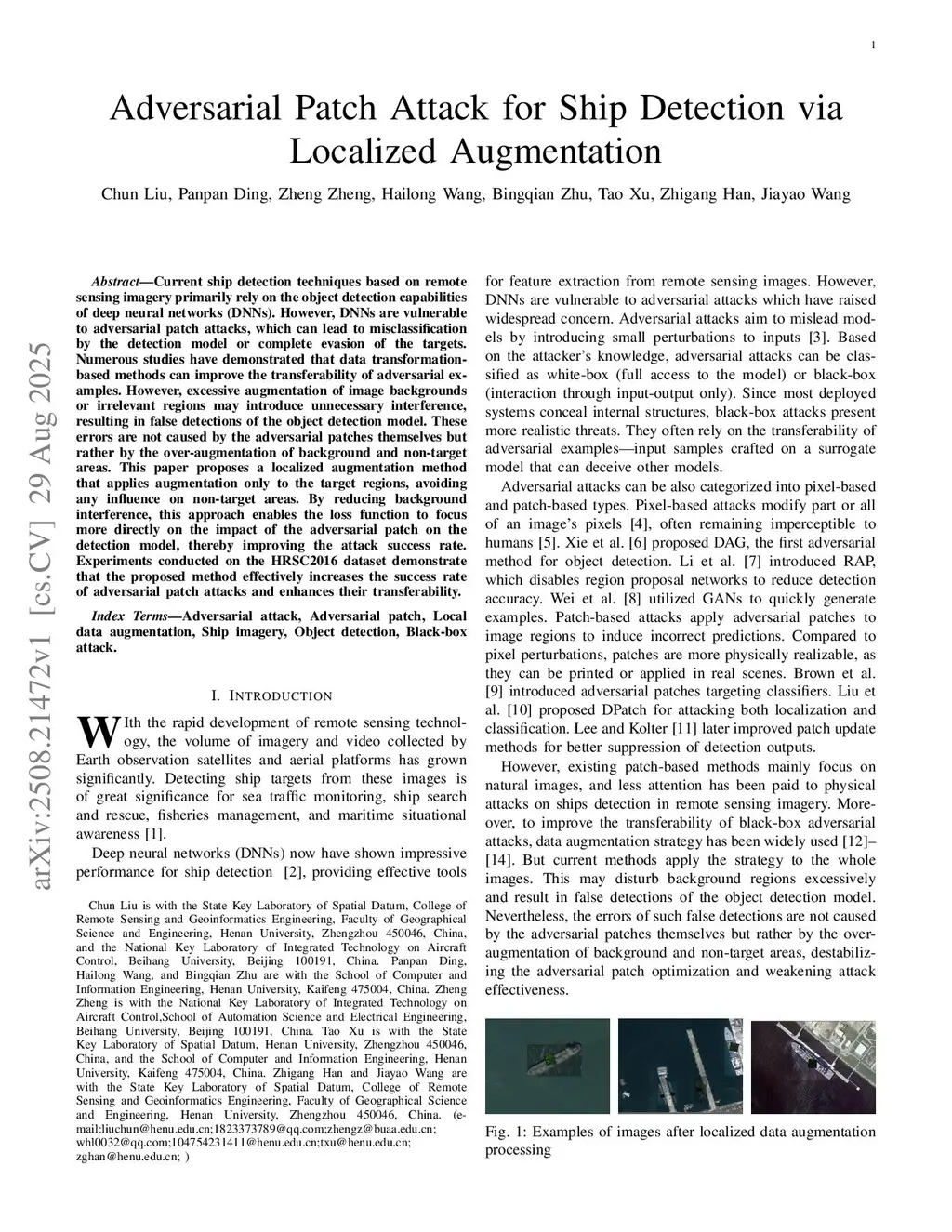Adversarial Patch Attack for Ship Detection via Localized Augmentation