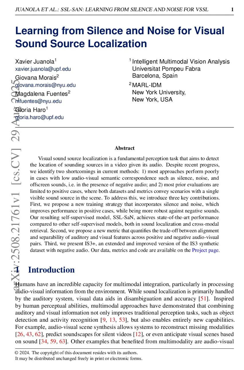 Visual sound source localization is a fundamental perception task that aims to detect the location of sounding sources in a video given its audio. Despite recent progress, we identify two shortcomings in current methods: 1) most approaches perform poorly in cases with low audio-visual semantic correspondence such as silence, noise, and offscreen sounds, i.e. in the presence of negative audio; and 2) most prior evaluations are limited to positive cases, where both datasets and metrics convey scenarios with a single visible sound source in the scene. To address this, we introduce three key contributions. First, we propose a new training strategy that incorporates silence and noise, which improves performance in positive cases, while being more robust against negative sounds. Our resulting self-supervised model, SSL-SaN, achieves state-of-the-art performance compared to other self-supervised models, both in sound localization and cross-modal retrieval. Second, we propose a new metric that quantifies the trade-off between alignment and separability of auditory and visual features across positive and negative audio-visual pairs. Third, we present IS3+, an extended and improved version of the IS3 synthetic dataset with negative audio.Our data, metrics and code are available on thethis https URL.