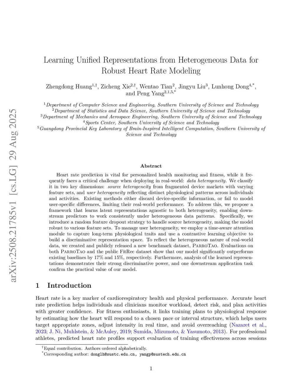 Learning Unified Representations from Heterogeneous Data for Robust Heart Rate Modeling