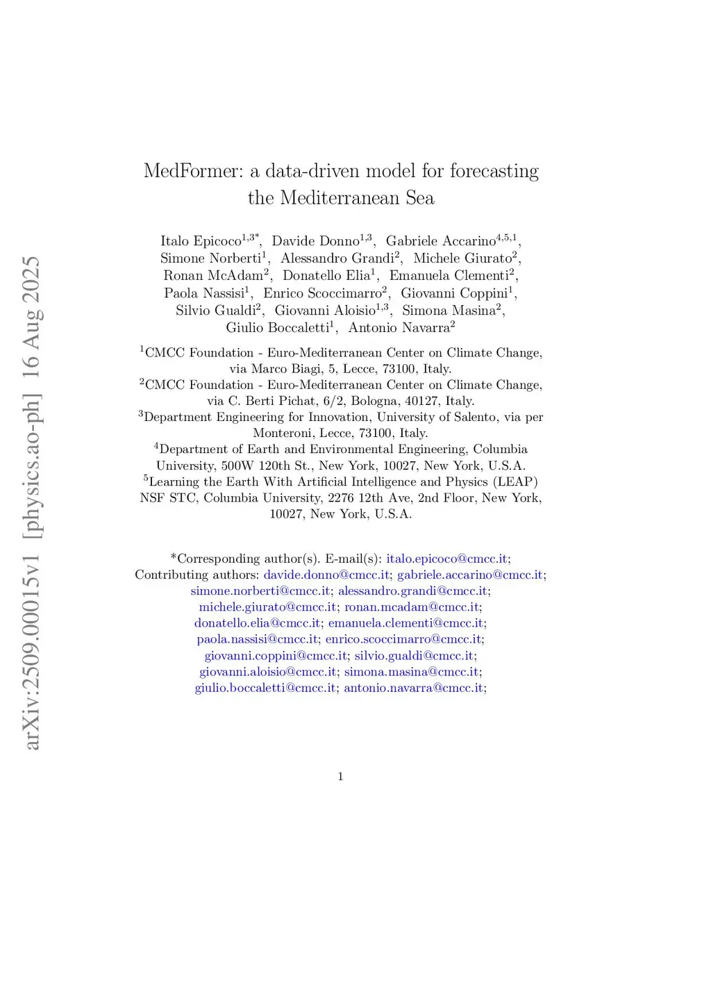 MedFormer: a data-driven model for forecasting the Mediterranean Sea