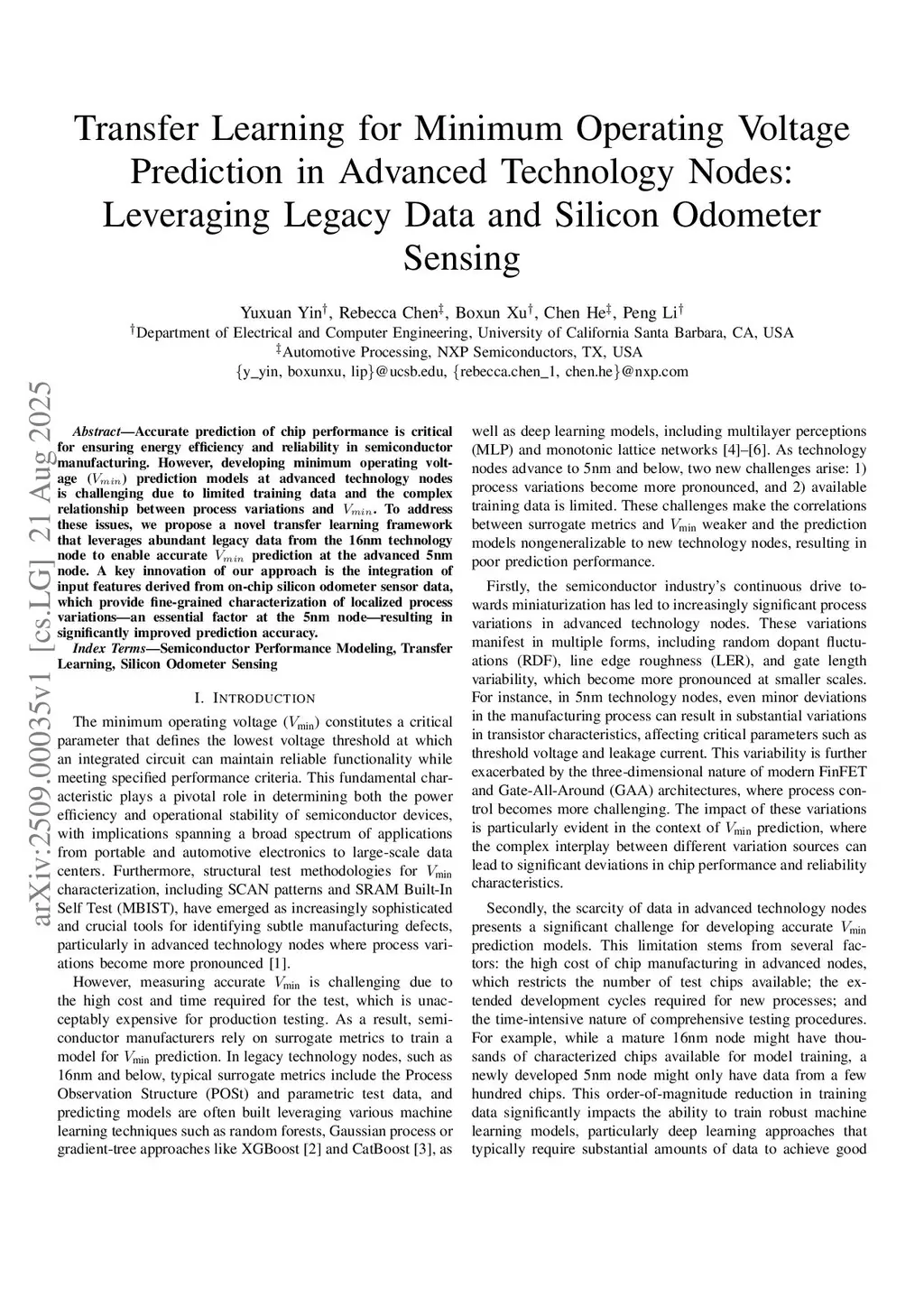 Transfer Learning for Minimum Operating Voltage Prediction in Advanced Technology Nodes: Leveraging Legacy Data and Silicon Odometer Sensing