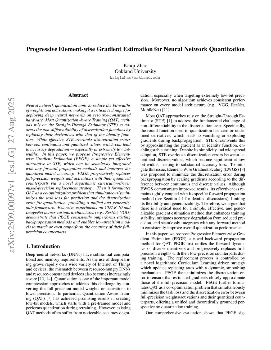 Progressive Element-wise Gradient Estimation for Neural Network Quantization