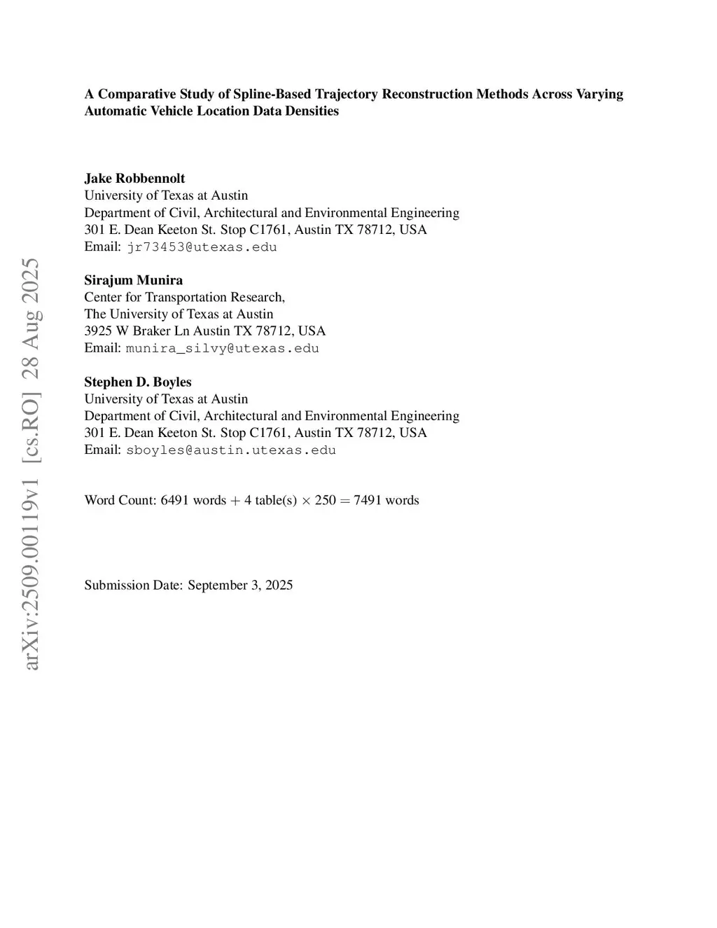 A Comparative Study of Spline-Based Trajectory Reconstruction Methods Across Varying Automatic Vehicle Location Data Densities