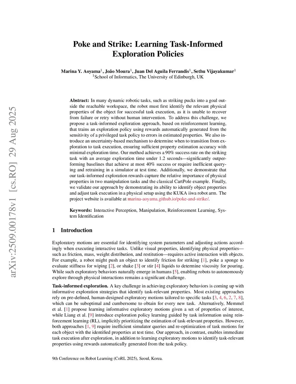 Poke and Strike: Learning Task-Informed Exploration Policies