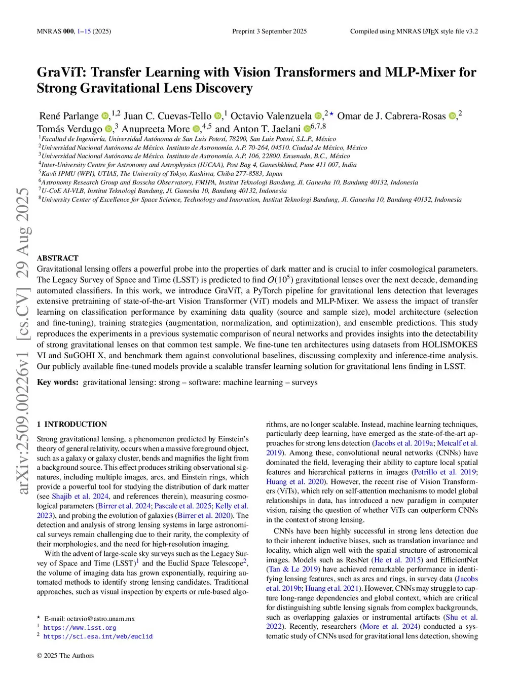 Gravitational lensing offers a powerful probe into the properties of dark matter and is crucial to infer cosmological parameters. The Legacy Survey of Space and Time (LSST) is predicted to find O(10^5) gravitational lenses over the next decade, demanding automated classifiers. In this work, we introduce GraViT, a PyTorch pipeline for gravitational lens detection that leverages extensive pretraining of state-of-the-art Vision Transformer (ViT) models and MLP-Mixer. We assess the impact of transfer learning on classification performance by examining data quality (source and sample size), model architecture (selection and fine-tuning), training strategies (augmentation, normalization, and optimization), and ensemble predictions. This study reproduces the experiments in a previous systematic comparison of neural networks and provides insights into the detectability of strong gravitational lenses on that common test sample. We fine-tune ten architectures using datasets from HOLISMOKES VI and SuGOHI X, and benchmark them against convolutional baselines, discussing complexity and inference-time analysis.