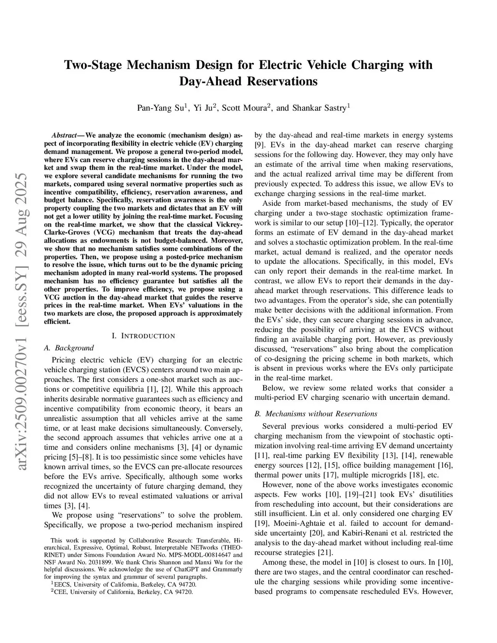 We propose a general two-period model where electrical vehicles (EVs) can reserve charging sessions in the day-ahead market and swap them in the real-time market. Under the model, we explore several candidate mechanisms for running the two markets, compared using several normative properties such as incentive compatibility, efficiency, reservation awareness, and budget balance. Specifically, reservation awareness is the only property coupling the two markets and dictates that an EV will not get a lower utility by joining the real-time market. Focusing on the real-time market, we show that two variants of the classical Vickrey-Clarke-Groves (VCG) mechanism do not satisfy all the proposed properties; specifically, one is not reservation-aware, while the other is not budget-balanced. Moreover, we show that no mechanism satisfies some combinations of the properties. Then, we propose to use a posted-price mechanism to resolve the issue, which turns out to be the dynamic pricing mechanism adopted in many real-world systems. The proposed mechanism has no efficiency guarantee but satisfies all the other properties. To improve efficiency, we propose to use a VCG auction in the day-ahead market that guides the reserve prices in the real-time market. When EVs' valuations in the two markets are highly correlated, the proposed approach results in highly efficient outcomes.