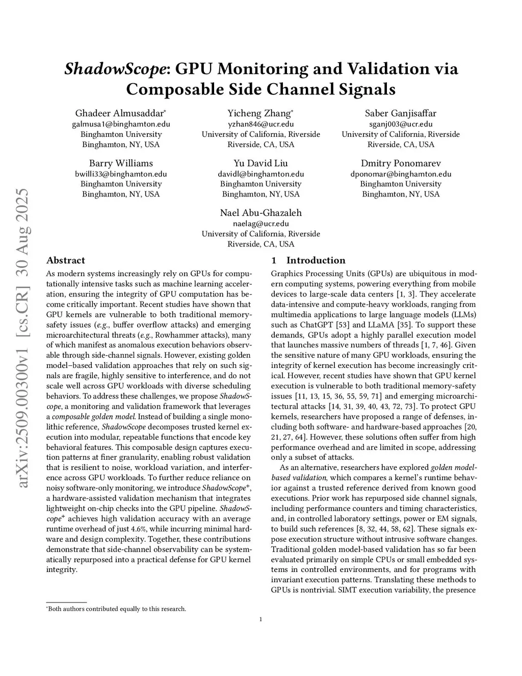 ShadowScope: GPU Monitoring and Validation via Composable Side Channel Signals
