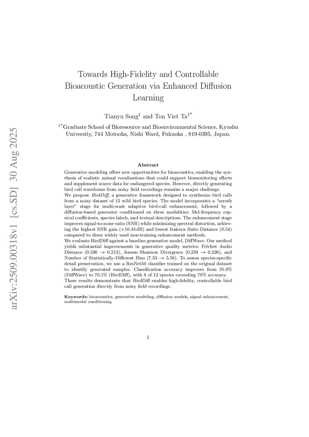 Towards High-Fidelity and Controllable Bioacoustic Generation via Enhanced Diffusion Learning