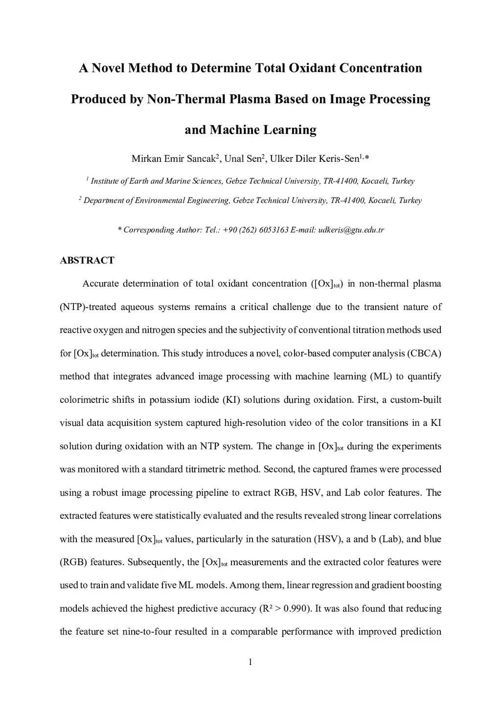 Accurate determination of total oxidant concentration [Ox]tot in nonthermal plasma treated aqueous systems remains a critical challenge due to the transient nature of reactive oxygen and nitrogen species and the subjectivity of conventional titration methods used for [Ox]tot determination. This study introduces a color based computer analysis method that integrates advanced image processing with machine learning to quantify colorimetric changes in potassium iodide solutions during oxidation. A custom built visual acquisition system recorded high resolution video of the color transitions occurring during plasma treatment while the change in oxidant concentration was simultaneously monitored using a standard titrimetric method. Extracted image frames were processed through a structured pipeline to obtain RGB, HSV, and Lab color features. Statistical analysis revealed strong linear relationships between selected color features and measured oxidant concentrations, particularly for HSV saturation, Lab a and b channels, and the blue component of RGB. These features were subsequently used to train and validate multiple machine learning models including linear regression, ridge regression, random forest, gradient boosting, and neural networks. Linear regression and gradient boosting demonstrated the highest predictive accuracy with R2 values exceeding 0.99. Dimensionality reduction from nine features to smaller feature subsets preserved predictive performance while improving computational efficiency. Comparison with experimental titration measurements showed that the proposed system predicts total oxidant concentration in potassium iodide solution with very high accuracy, achieving R2 values above 0.998 even under reduced feature conditions.