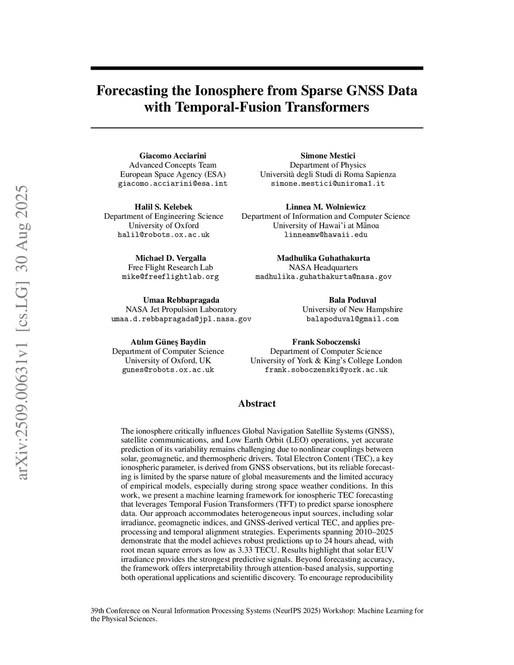 Forecasting the Ionosphere from Sparse GNSS Data with Temporal-Fusion Transformers
