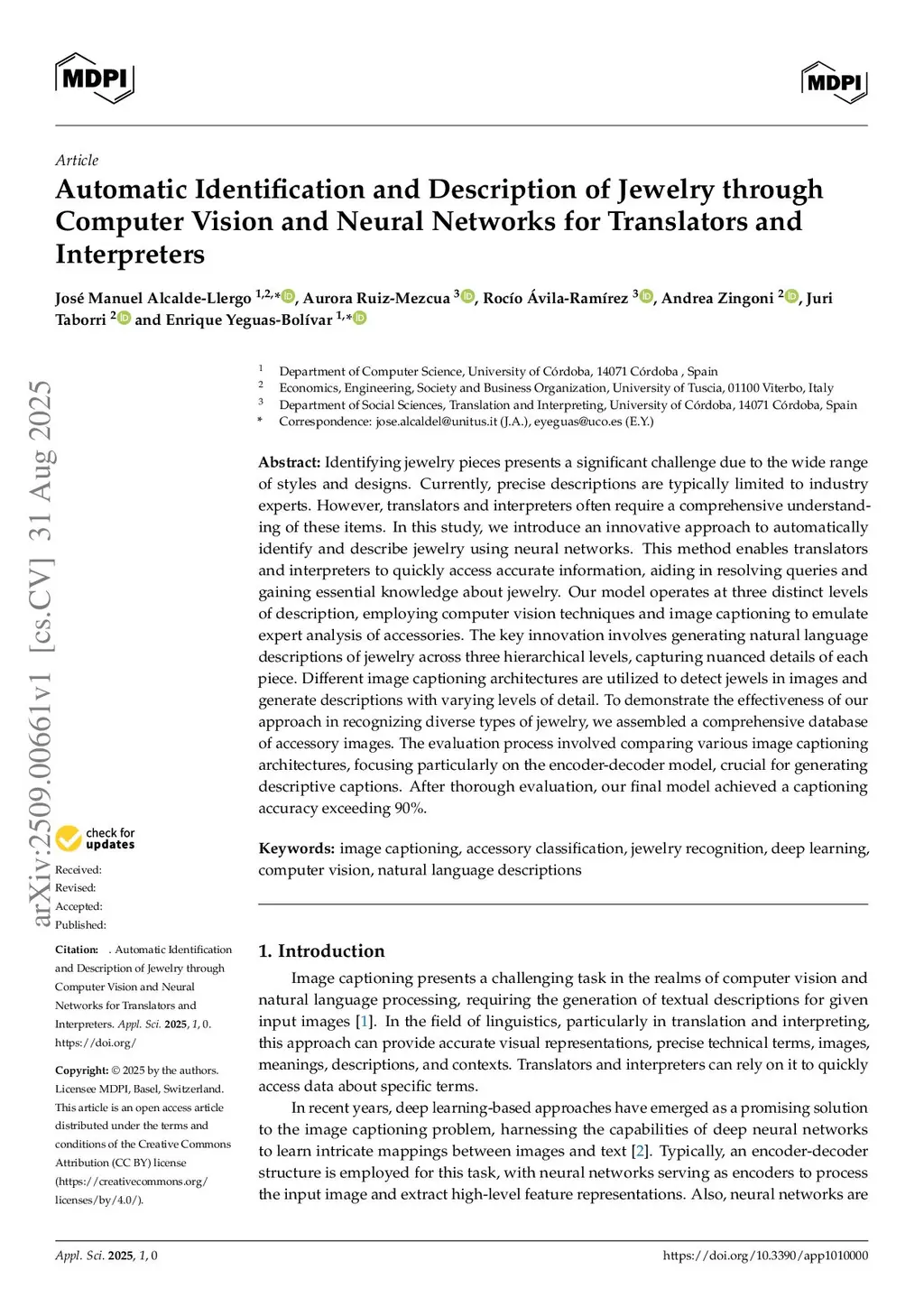 Automatic Identification and Description of Jewelry Through Computer Vision and Neural Networks for Translators and Interpreters