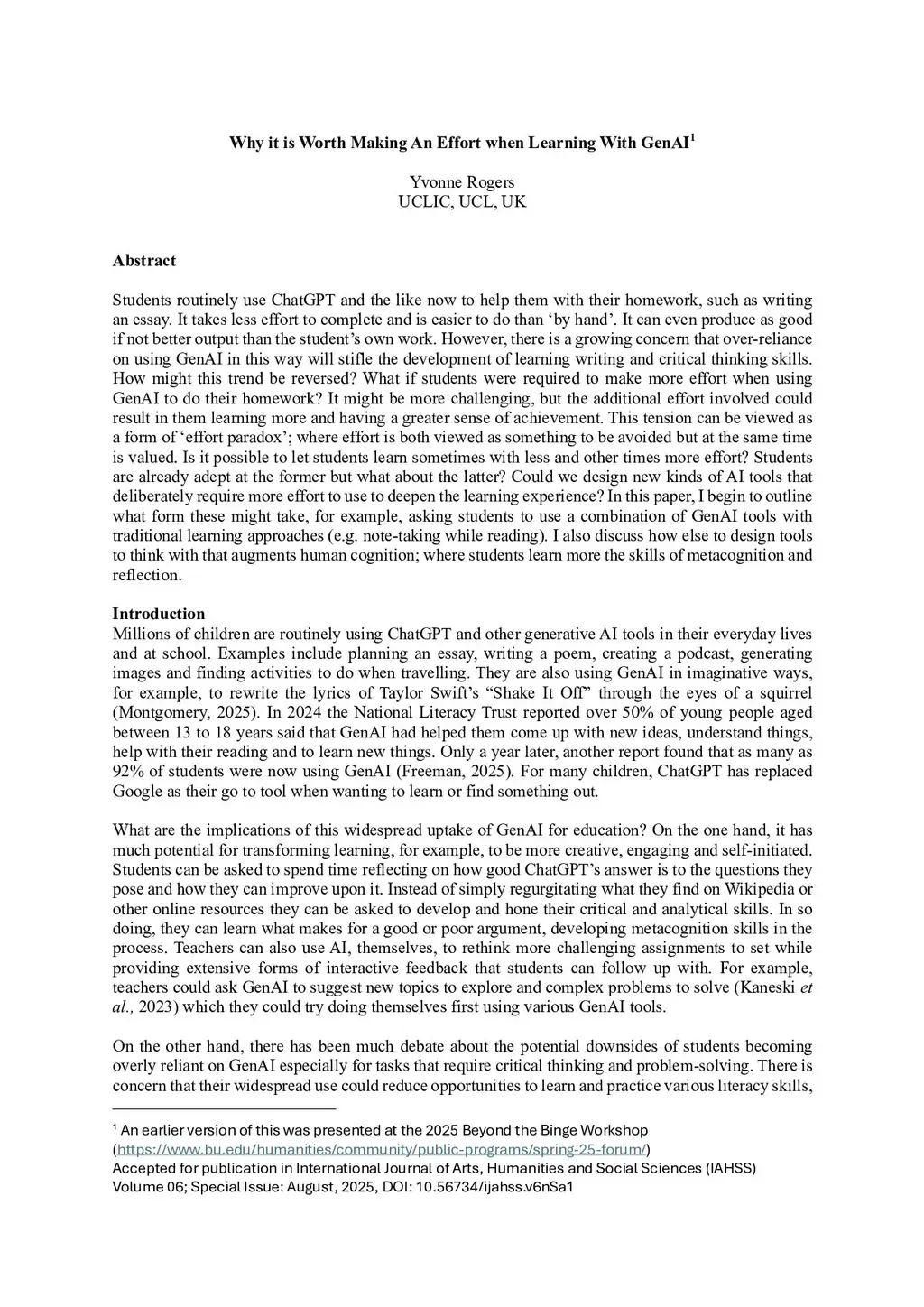 Students routinely use ChatGPT and the like now to help them with their homework, such as writing an essay. It takes less effort to complete and is easier to do than by hand. It can even produce as good if not better output than the student's own work. However, there is a growing concern that over-reliance on using GenAI in this way will stifle the development of learning writing and critical thinking skills. How might this trend be reversed? What if students were required to make more effort when using GenAI to do their homework? It might be more challenging, but the additional effort involved could result in them learning more and having a greater sense of achievement. This tension can be viewed as a form of effort paradox; where effort is both viewed as something to be avoided but at the same time is valued. Is it possible to let students learn sometimes with less and other times more effort? Students are already adept at the former but what about the latter? Could we design new kinds of AI tools that deliberately require more effort to use to deepen the learning experience? In this paper, I begin to outline what form these might take, for example, asking students to use a combination of GenAI tools with traditional learning approaches (e.g. note-taking while reading). I also discuss how else to design tools to think with that augments human cognition; where students learn more the skills of metacognition and reflection.