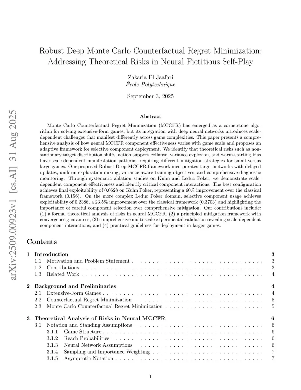 Monte Carlo Counterfactual Regret Minimization (MCCFR) has emerged as a cornerstone algorithm for solving extensive-form games, but its integration with deep neural networks introduces scale-dependent challenges that manifest differently across game complexities. This paper presents a comprehensive analysis of how neural MCCFR component effectiveness varies with game scale and proposes an adaptive framework for selective component deployment. We identify that theoretical risks such as nonstationary target distribution shifts, action support collapse, variance explosion, and warm-starting bias have scale-dependent manifestation patterns, requiring different mitigation strategies for small versus large games. Our proposed Robust Deep MCCFR framework incorporates target networks with delayed updates, uniform exploration mixing, variance-aware training objectives, and comprehensive diagnostic monitoring. Through systematic ablation studies on Kuhn and Leduc Poker, we demonstrate scale-dependent component effectiveness and identify critical component interactions. The best configuration achieves final exploitability of 0.0628 on Kuhn Poker, representing a 60% improvement over the classical framework (0.156). On the more complex Leduc Poker domain, selective component usage achieves exploitability of 0.2386, a 23.5% improvement over the classical framework (0.3703) and highlighting the importance of careful component selection over comprehensive mitigation. Our contributions include: (1) a formal theoretical analysis of risks in neural MCCFR, (2) a principled mitigation framework with convergence guarantees, (3) comprehensive multi-scale experimental validation revealing scale-dependent component interactions, and (4) practical guidelines for deployment in larger games.