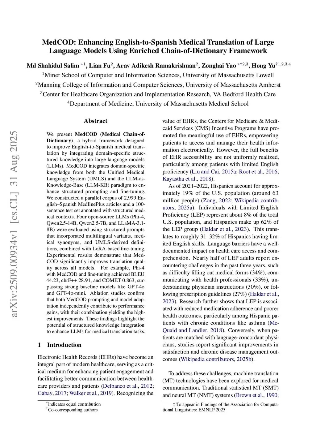 MedCOD: Enhancing English-to-Spanish Medical Translation of Large Language Models Using Enriched Chain-of-Dictionary Framework