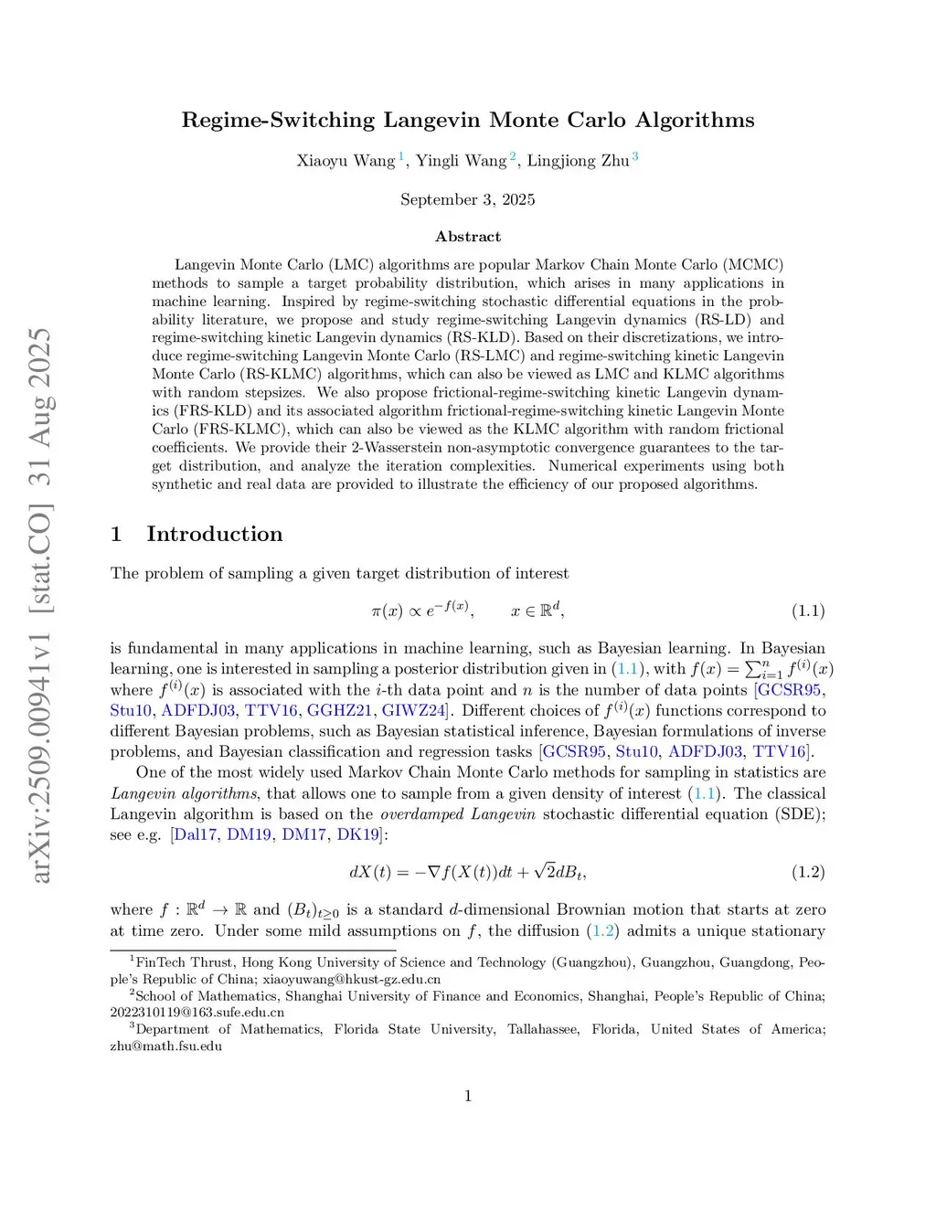 Langevin Monte Carlo (LMC) algorithms are popular Markov Chain Monte Carlo (MCMC) methods to sample a target probability distribution, which arises in many applications in machine learning. Inspired by regime-switching stochastic differential equations in the probability literature, we propose and study regime-switching Langevin dynamics (RS-LD) and regime-switching kinetic Langevin dynamics (RS-KLD). Based on their discretizations, we introduce regime-switching Langevin Monte Carlo (RS-LMC) and regime-switching kinetic Langevin Monte Carlo (RS-KLMC) algorithms, which can also be viewed as LMC and KLMC algorithms with random stepsizes. We also propose frictional-regime-switching kinetic Langevin dynamics (FRS-KLD) and its associated algorithm frictional-regime-switching kinetic Langevin Monte Carlo (FRS-KLMC), which can also be viewed as the KLMC algorithm with random frictional coefficients. We provide their 2-Wasserstein non-asymptotic convergence guarantees to the target distribution, and analyze the iteration complexities. Numerical experiments using both synthetic and real data are provided to illustrate the efficiency of our proposed algorithms.