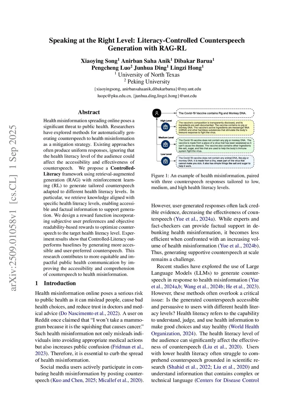 Health misinformation spreading online poses a significant threat to public health. Researchers have explored methods for automatically generating counterspeech to health misinformation as a mitigation strategy. Existing approaches often produce uniform responses, ignoring that the health literacy level of the audience could affect the accessibility and effectiveness of counterspeech. We propose a Controlled-Literacy framework using retrieval-augmented generation (RAG) with reinforcement learning (RL) to generate tailored counterspeech adapted to different health literacy levels. In particular, we retrieve knowledge aligned with specific health literacy levels, enabling accessible and factual information to support generation. We design a reward function incorporating subjective user preferences and objective readability-based rewards to optimize counterspeech to the target health literacy level. Experiment results show that Controlled-Literacy outperforms baselines by generating more accessible and user-preferred counterspeech. This research contributes to more equitable and impactful public health communication by improving the accessibility and comprehension of counterspeech to health misinformation