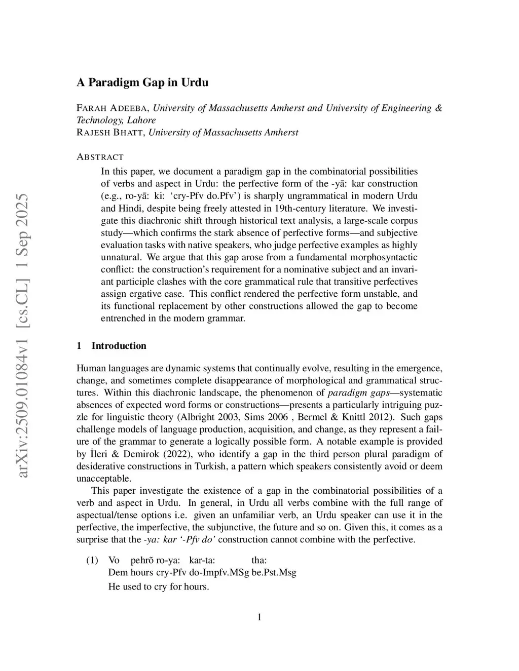 A Paradigm Gap in Urdu