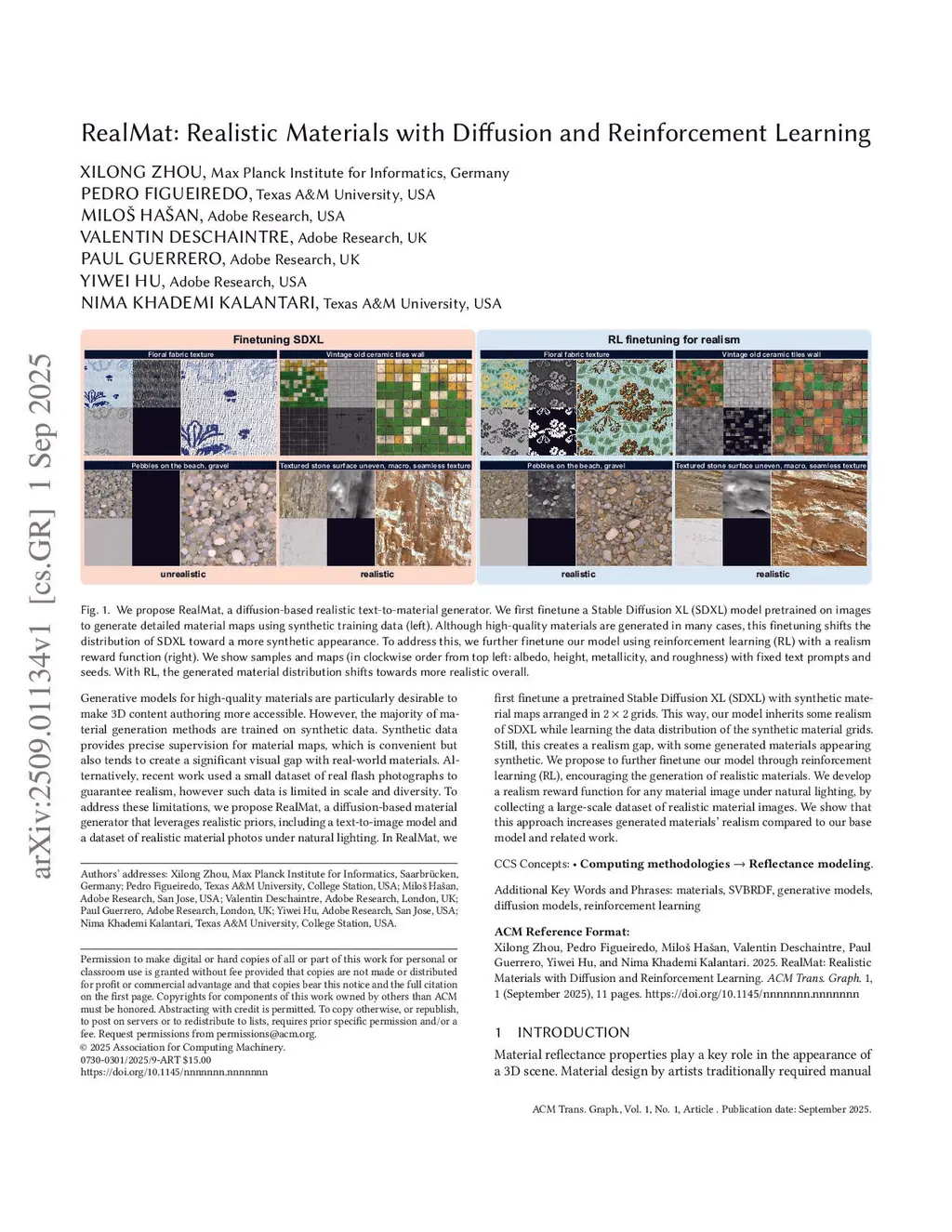 RealMat: Realistic Materials with Diffusion and Reinforcement Learning