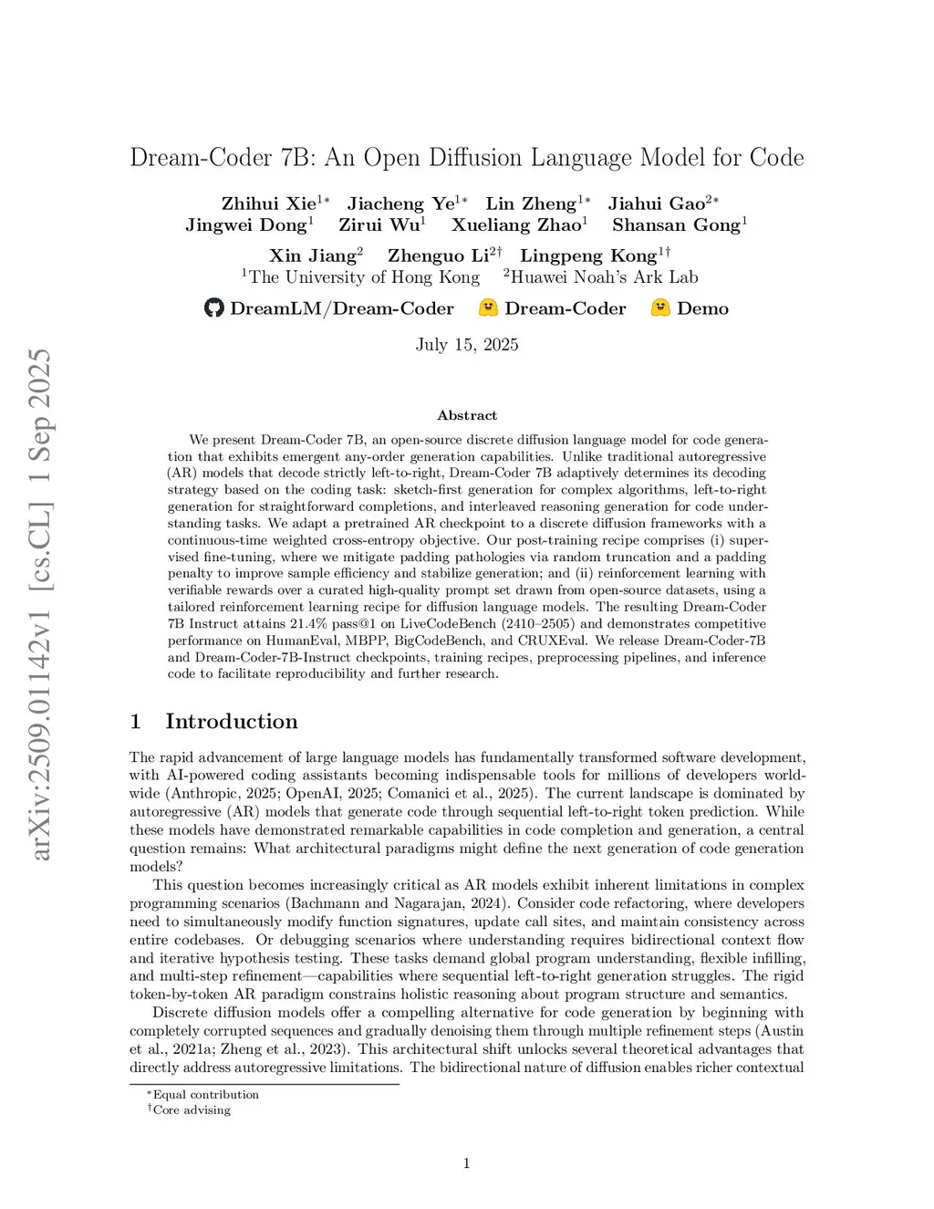 Dream-Coder 7B: An Open Diffusion Language Model for Code