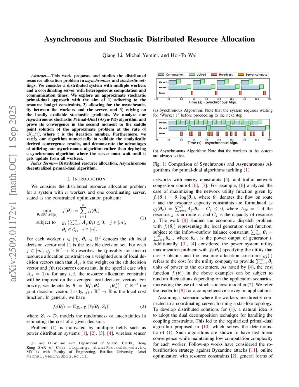 This work proposes and studies the distributed resource allocation problem in asynchronous and stochastic settings. We consider a distributed system with multiple workers and a coordinating server with heterogeneous computation and communication times. We explore an approximate stochastic primal-dual approach with the aim of 1) adhering to the resource budget constraints, 2) allowing for the asynchronicity between the workers and the server, and 3) relying on the locally available stochastic gradients. We analyze our Asynchronous stochastic Primal-Dual (Asyn-PD) algorithm and prove its convergence in the second moment to the saddle point solution of the approximate problem at the rate of , where is the iteration number. Furthermore, we verify our algorithm numerically to validate the analytically derived convergence results, and demonstrate the advantages of utilizing our asynchronous algorithm rather than deploying a synchronous algorithm where the server must wait until it gets update from all workers.