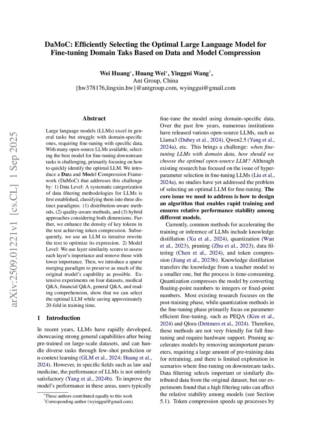 DaMoC: Efficiently Selecting the Optimal Large Language Model for Fine-tuning Domain Tasks Based on Data and Model Compression