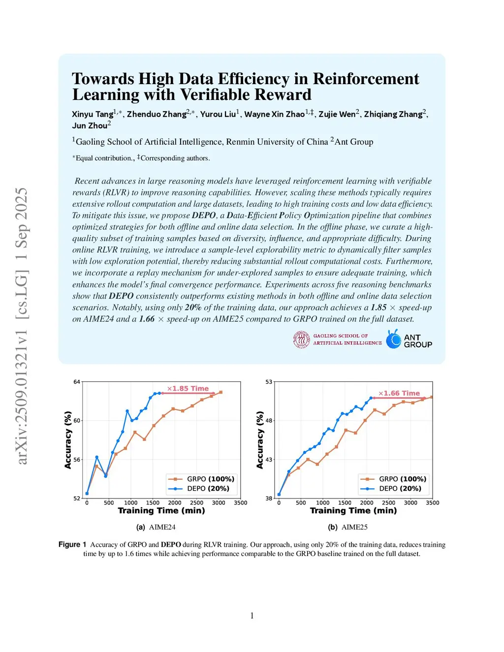 Towards High Data Efficiency in Reinforcement Learning with Verifiable Reward