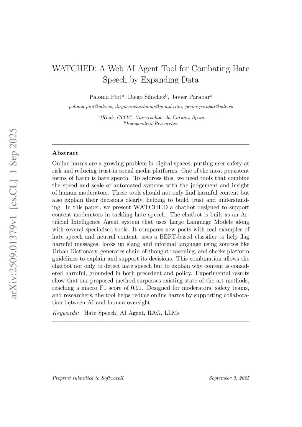 WATCHED: A Web AI Agent Tool for Combating Hate Speech by Expanding Data