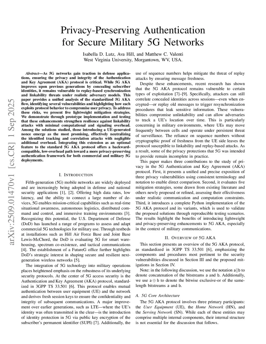 Privacy-preserving authentication for military 5G networks