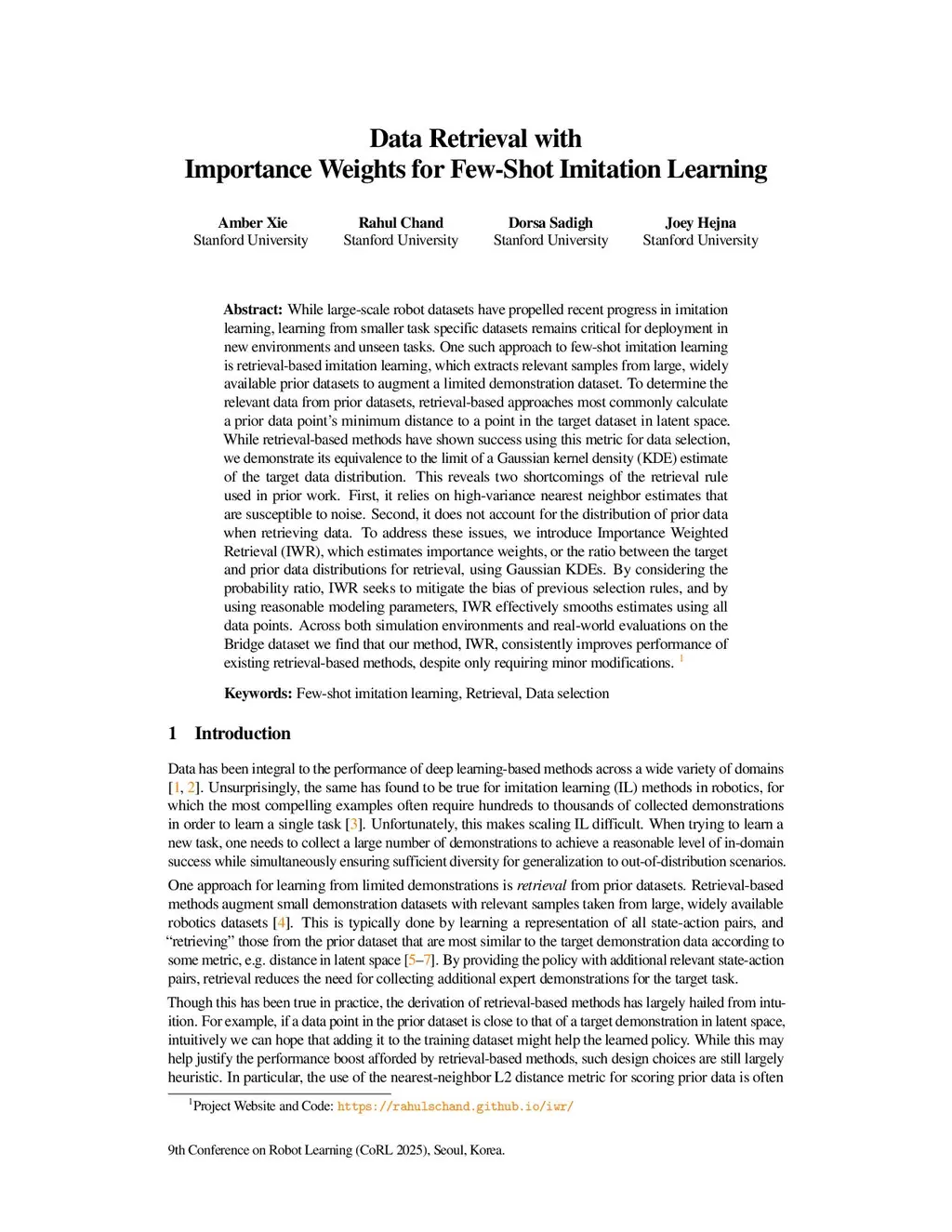 Data Retrieval with Importance Weights for Few-Shot Imitation Learning
