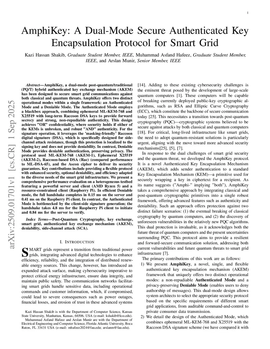 AmphiKey: A Dual-Mode Secure Authenticated Key Encapsulation Protocol for Smart Grid