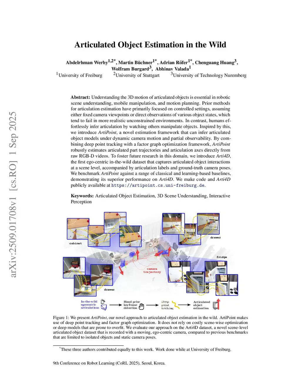 Understanding the 3D motion of articulated objects is essential in robotic scene understanding, mobile manipulation, and motion planning. Prior methods for articulation estimation have primarily focused on controlled settings, assuming either fixed camera viewpoints or direct observations of various object states, which tend to fail in more realistic unconstrained environments. In contrast, humans effortlessly infer articulation by watching others manipulate objects. Inspired by this, we introduce ArtiPoint, a novel estimation framework that can infer articulated object models under dynamic camera motion and partial observability. By combining deep point tracking with a factor graph optimization framework, ArtiPoint robustly estimates articulated part trajectories and articulation axes directly from raw RGB-D videos. To foster future research in this domain, we introduce Arti4D, the first ego-centric in-the-wild dataset that captures articulated object interactions at a scene level, accompanied by articulation labels and ground-truth camera poses. We benchmark ArtiPoint against a range of classical and learning-based baselines, demonstrating its superior performance on Arti4D. We make code and Arti4D publicly available atthis https URL.