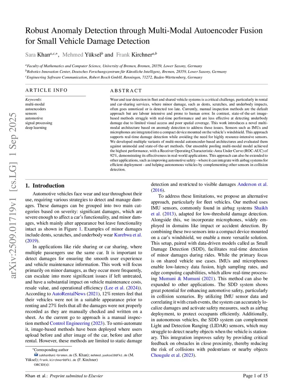Robust Anomaly Detection through Multi-Modal Autoencoder Fusion for Small Vehicle Damage Detection