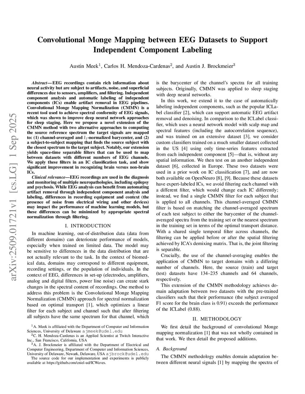 Convolutional Monge Mapping between EEG Datasets to Support Independent Component Labeling