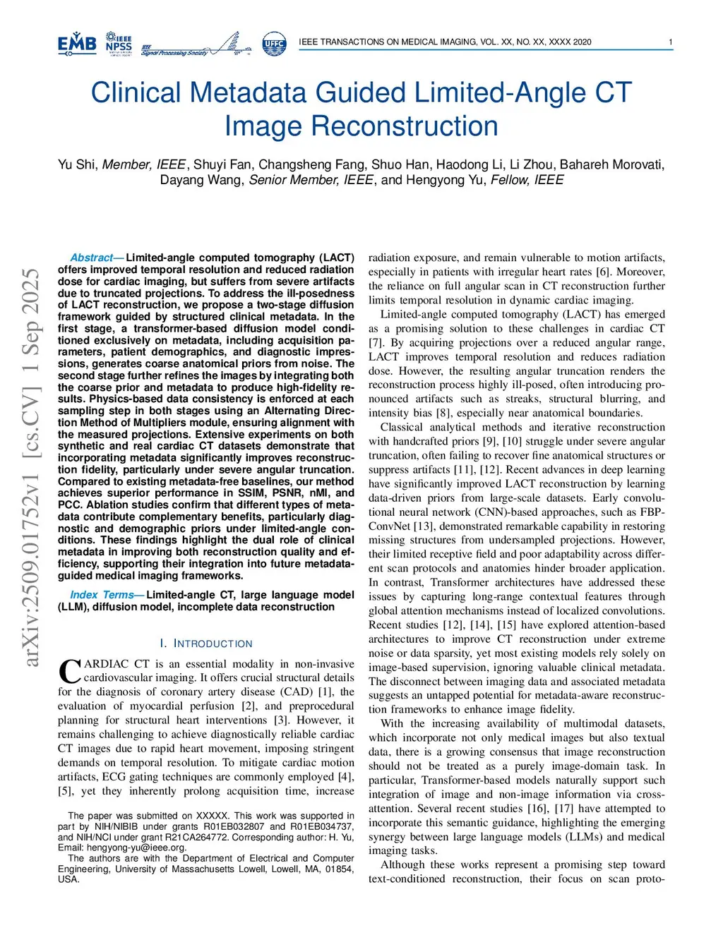 Clinical Metadata Guided Limited-Angle CT Image Reconstruction
