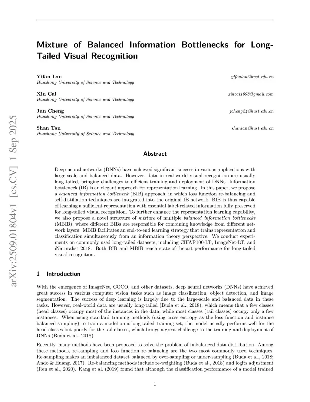 Deep neural networks (DNNs) have achieved significant success in various applications with large-scale and balanced data. However, data in real-world visual recognition are usually long-tailed, bringing challenges to efficient training and deployment of DNNs. Information bottleneck (IB) is an elegant approach for representation learning. In this paper, we propose a balanced information bottleneck (BIB) approach, in which loss function re-balancing and self-distillation techniques are integrated into the original IB network. BIB is thus capable of learning a sufficient representation with essential label-related information fully preserved for long-tailed visual recognition. To further enhance the representation learning capability, we also propose a novel structure of mixture of multiple balanced information bottlenecks (MBIB), where different BIBs are responsible for combining knowledge from different network layers. MBIB facilitates an end-to-end learning strategy that trains representation and classification simultaneously from an information theory perspective. We conduct experiments on commonly used long-tailed datasets, including CIFAR100-LT, ImageNet-LT, and iNaturalist 2018. Both BIB and MBIB reach state-of-the-art performance for long-tailed visual recognition.