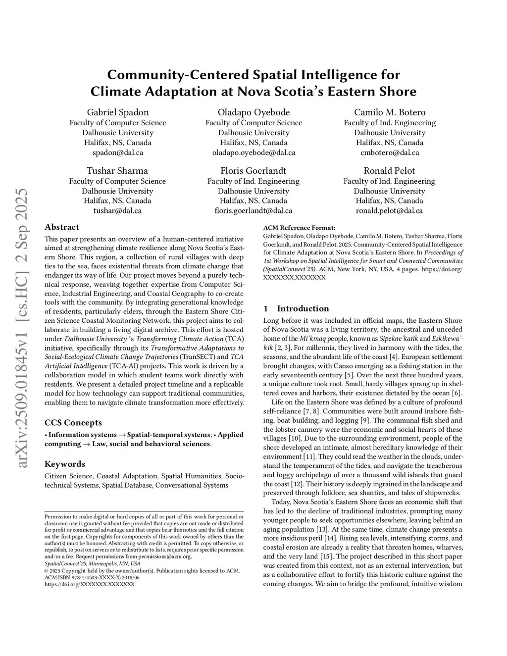 Community-Centered Spatial Intelligence for Climate Adaptation at Nova Scotia's Eastern Shore