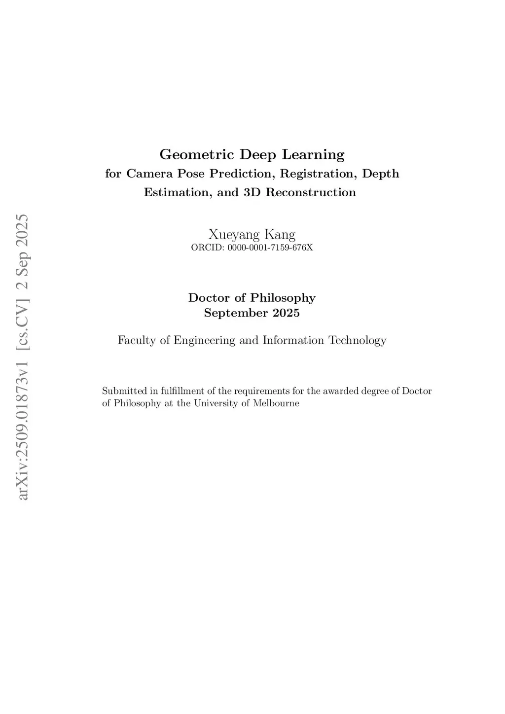 Doctoral Thesis: Geometric Deep Learning For Camera Pose Prediction, Registration, Depth Estimation, and 3D Reconstruction