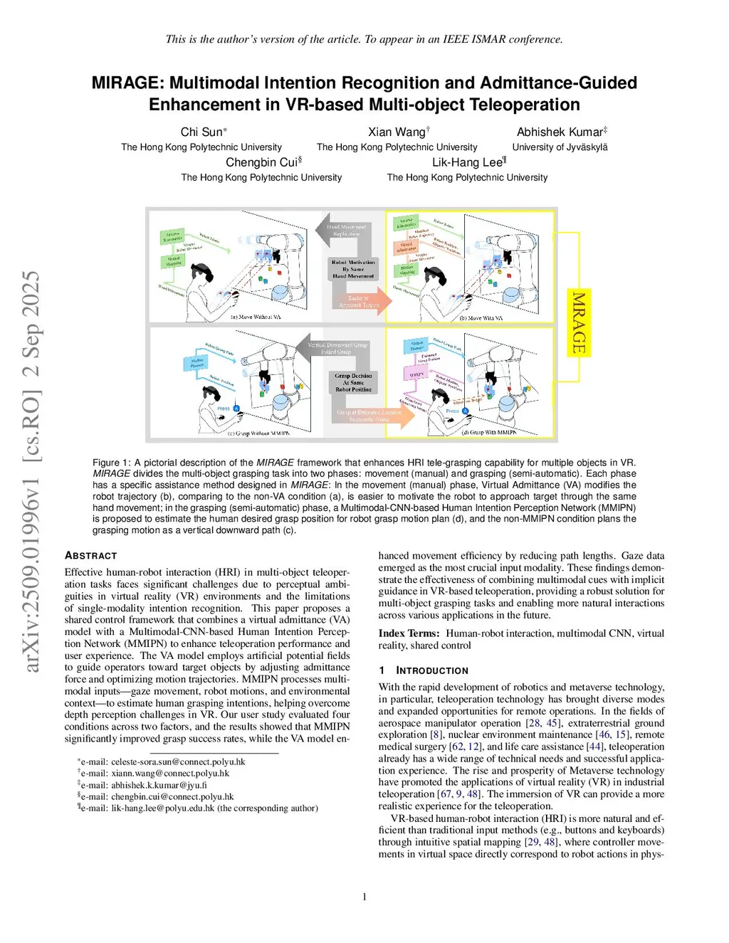 MIRAGE: Multimodal Intention Recognition and Admittance-Guided Enhancement in VR-based Multi-object Teleoperation