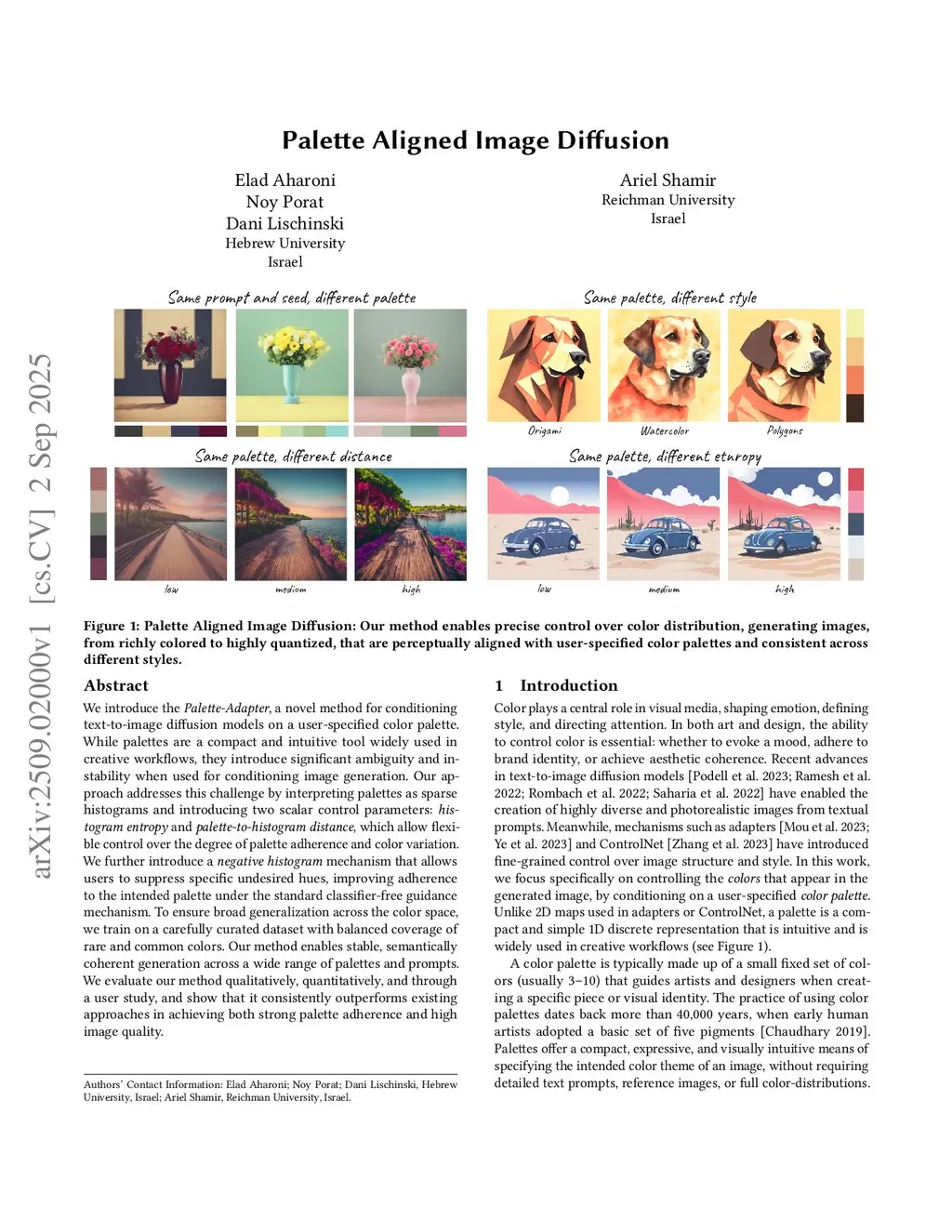 We introduce the Palette-Adapter, a novel method for conditioning text-to-image diffusion models on a user-specified color palette. While palettes are a compact and intuitive tool widely used in creative workflows, they introduce significant ambiguity and instability when used for conditioning image generation. Our approach addresses this challenge by interpreting palettes as sparse histograms and introducing two scalar control parameters: histogram entropy and palette-to-histogram distance, which allow flexible control over the degree of palette adherence and color variation. We further introduce a negative histogram mechanism that allows users to suppress specific undesired hues, improving adherence to the intended palette under the standard classifier-free guidance mechanism. To ensure broad generalization across the color space, we train on a carefully curated dataset with balanced coverage of rare and common colors. Our method enables stable, semantically coherent generation across a wide range of palettes and prompts. We evaluate our method qualitatively, quantitatively, and through a user study, and show that it consistently outperforms existing approaches in achieving both strong palette adherence and high image quality.