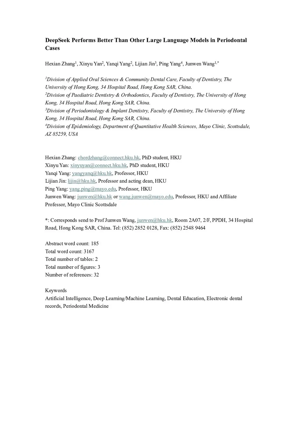 DeepSeek performs better than other Large Language Models in Dental Cases